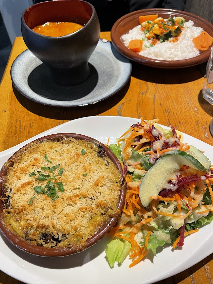 This is my favorite place in Paris!!! The potato gratin was the best thing I ate and I’ve been craving it! It was perfect! I was worried about the vegan cheese but it was delectable and smooth. I have eaten a lot of potatoes in my life but this was by far the BEST! The wait staff was so sweet! One of the waiters even took our picture. We were thrilled. This place is a very short walk from Notre-Dame. It’s an idyllic cafe!